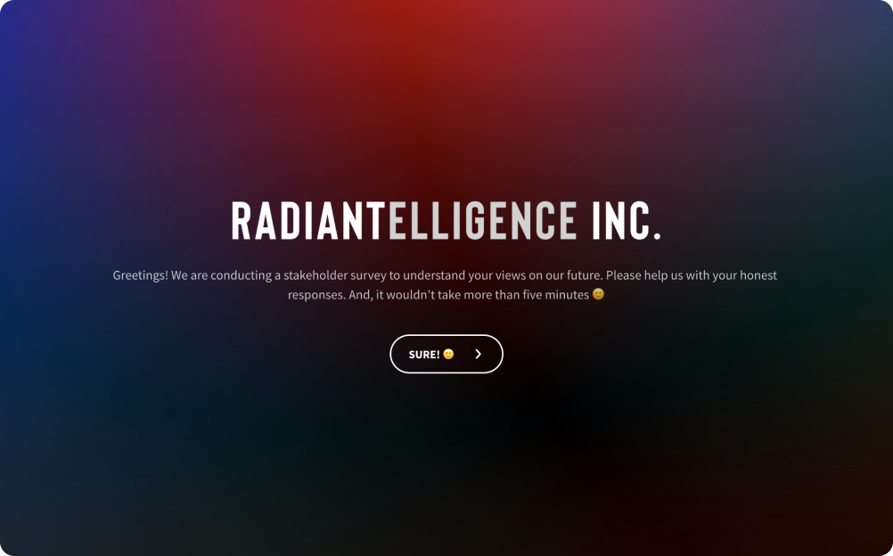 The Stakeholder Satisfaction Survey Template helps align business strategies with stakeholder expectations through engaging feedback methods and enhancing strategic decisions. The conversational UI with multiple question types enables the stakeholders to fill out the form, providing an engaging user experience.
