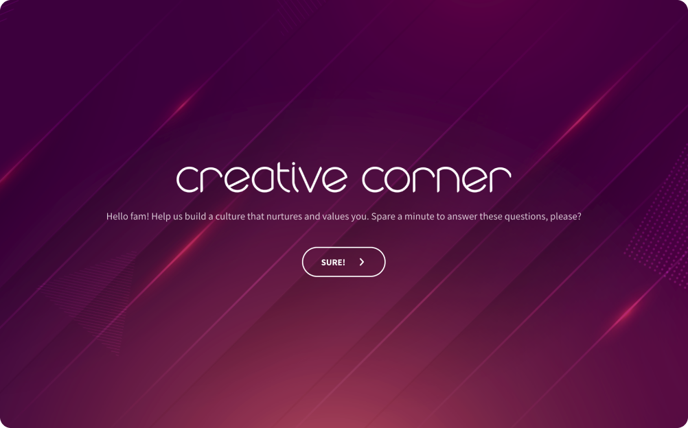 Integrate this survey in internal communication tools like Slack. Leave the technicalities to us, and you just hit a button to integrate your survey seamlessly.