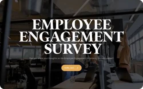 Create a conversational survey using this sample questionnaire on employee engagement. Share them using our features, integrations or through an email. Use executive dashboard to generate reports, analyze data, and build a deeper connection with your employees.