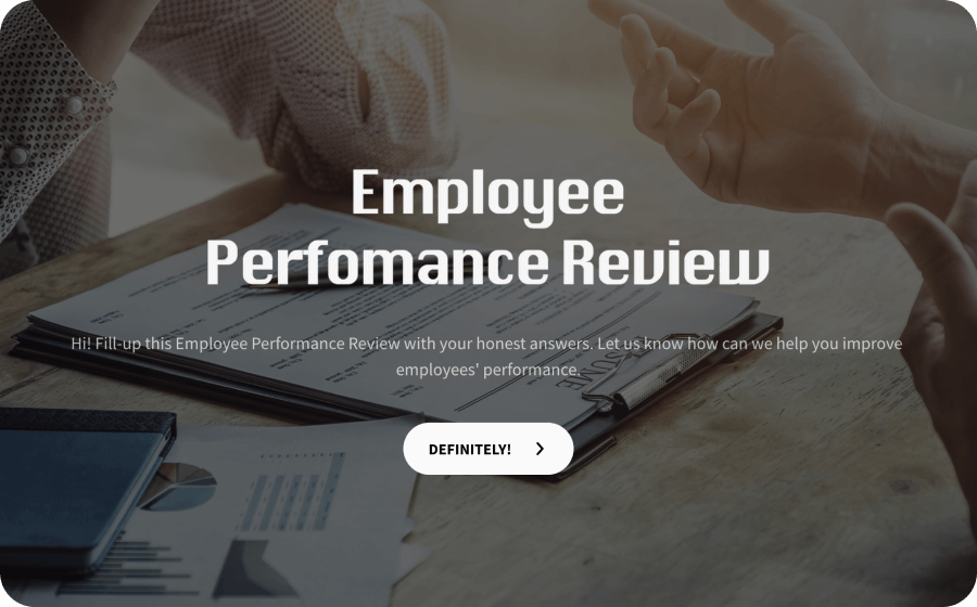 Make the review forms engaging by using picture choice questions instead of text. This employee evaluation template also has features to insert GIFs and video clips in between the questions to enhance the reviewers experience.