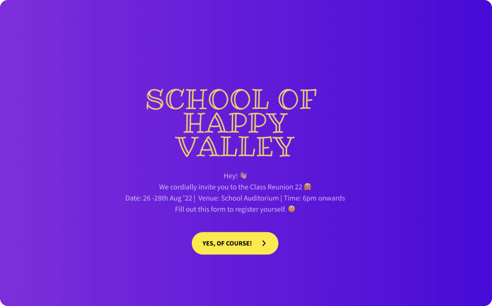 Make this form more engaging and interesting. Add images and videos as backgrounds, you can also use emojis and GIFs!